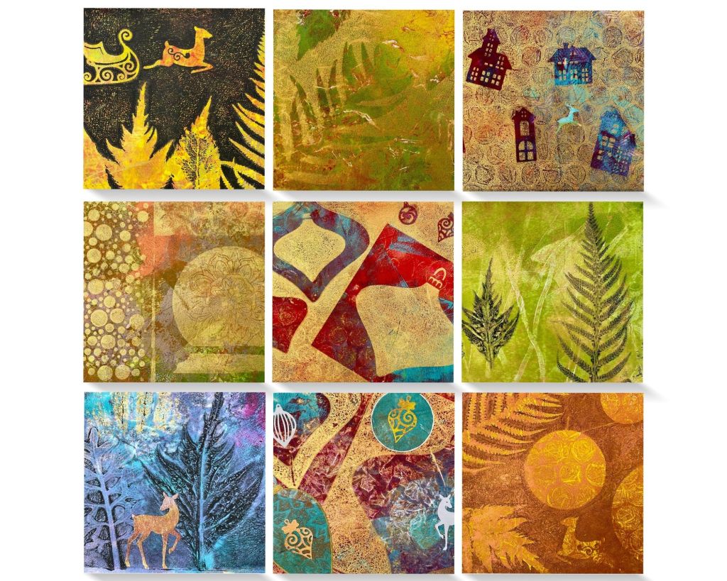 A fun and creative day creating Christmas inspired prints using a gelli-plate. Gelli-plate printing has revolutionised printmaking, making beautiful prints accessible with minimal equipment. These prints can be used for mixed media journaling, greeting cards, gift labels or just a standalone beautiful piece of art. Come and explore this fantastic technique and open up some creative possibilities.